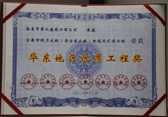 新年伊始,公司項(xiàng)目就迎來了開門紅。公司承建的宜春市明月大橋改建及引道工程榮獲華東地區(qū)優(yōu)質(zhì)工程獎(jiǎng)。